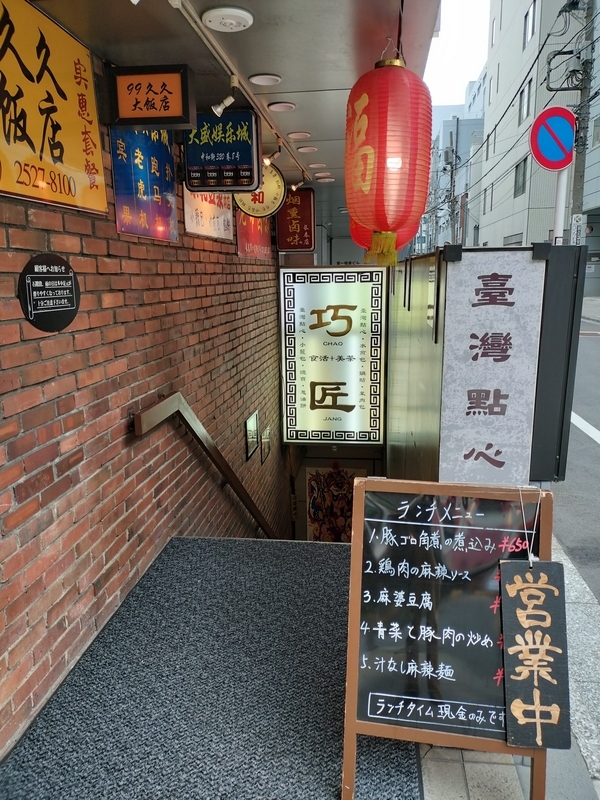 巧匠は、銀座3丁目、いつも行列の「五代目 花山うどん 銀座店」のとなりにある、地下に向かっていく、台湾屋台料理のお店です。